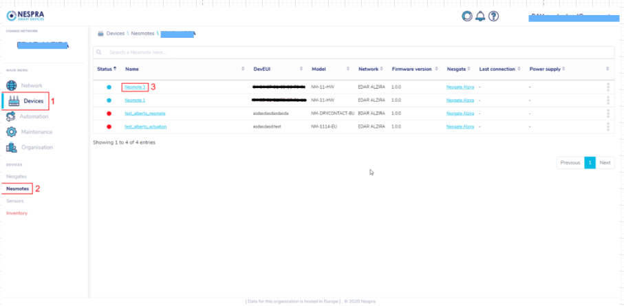 Once inside, we will have to click on the name of the Nesmote in the table (3).