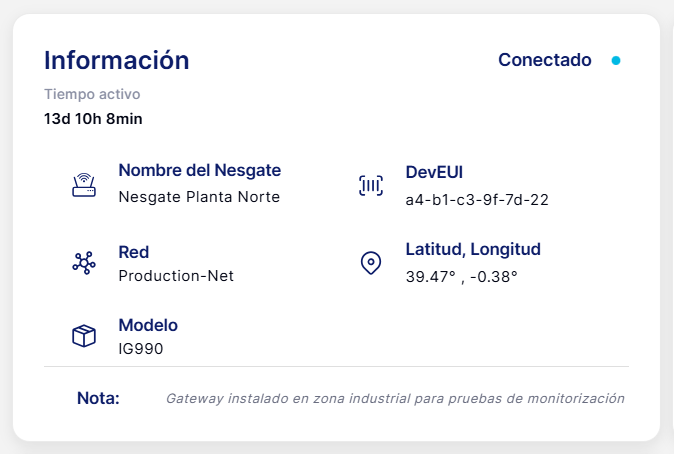 Desde la plataforma puedes consultar todos los Nesgates asociados a tu organización y acceder a la información principal de cada uno de ellos.