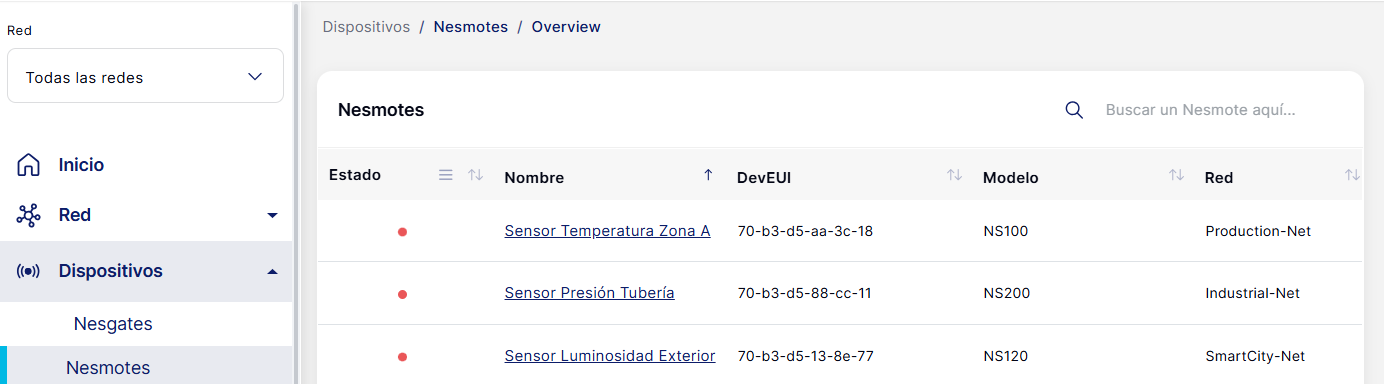 En esta pantalla se mostrará el listado de Nesmotes vinculados a tu organización, junto con información básica de cada uno.