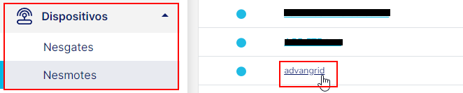 Para ello debemos hacer clic en "Nesmotes", dentro de la sección de "Dispositivos" y dentro de la tabla hacer clic en el nombre del Nesmote tal como se indica en la imagen inferior: